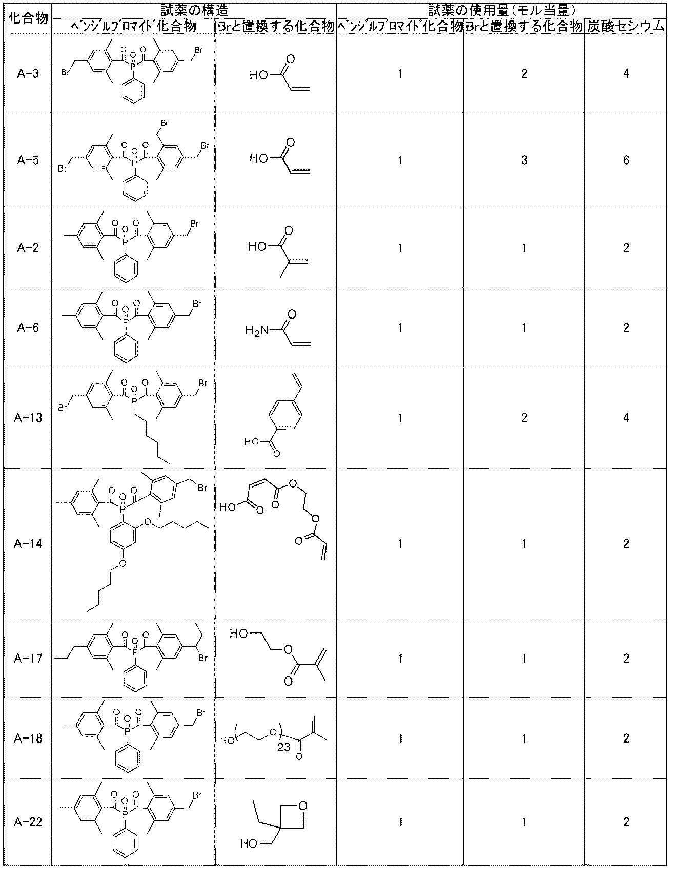 <アシル基に重合性官能基を有するアシルホスフィンオキシド化合物> <Acylphosphine oxide compound having a polymerizable functional group into an acyl group>